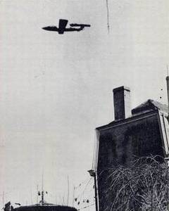 Le 13 juin 1944, lorsque les premiers VI s'abattirent sur l'Angleterre, à Swanscombe, Sevenoaks, Cuckfield et Sethnal Green, les Anglais, assaillis de toutes parts, étaient cependant déjà portés à l'humour macabre et provocant. Le «Flugzeug» 76, plus connu sous le nom de V1, ou «Vergeltungswaffe Eins», arme de représailles Numéro I, permit le bombardement de la Grande-Bretagne au moyen d'une arme guidée. Les ingénieurs de Peenemùnde se mirent au travail en juin 1942 et, deux ans plus tard, le 12 juin 1944, le premier V1 apparut dans le ciel britannique.