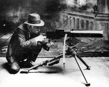 (John M. BROWNING testant une de ses inventions.) |