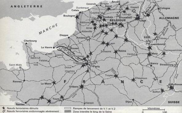 Carte des bombardements massifs préventifs pour la réussite d’Overlord.
