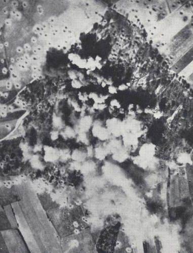 C'est sur ces marqueurs, finalement, que les vagues successives de bombardiers lâchèrent leur cargaison : les énormes bombes de 3600 kilos et les blockbusters (souffleurs de pâtés de maisons) de 1800 kilos par vingtaines, les bombes de 450 kilos par milliers et une véritable pluie de bombes incendiaires de 2 kilos.