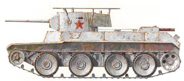 En 1929, une mission technique soviétique fut envoyée à l’étranger et fut très impressionnée par les nouveaux chars rapides et convertibles construits aux USA par J. Walter Christie. C’est chars étaient munis de puissants moteurs d’avions et pouvaient évoluer avec ou sans chenilles, pouvant atteindre une vitesse maximale de 63 Km/h sur chenille et plus de 100 Km/h sur roues, et étant aussi capables de parcourir 230 Km sans ravitaillement. Ce type de char convenant parfaitement aux missions dévolues aux chars BT (chars rapides) des divisions mécanisées DD (à grand rayon d’action) chargées d’opérations autonomes de pénétrations profondes, deux chars Christie furent achetés par l’URSS.