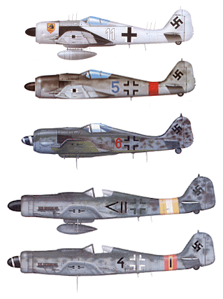 Apparu près de 5 ans après le Me 109, le Fw 190 lui était supérieur dans presque tous les domaines de combat. La catégorie que nous venons d’aborder peut être appelée les "Court Nez" par opposition aux "Long Nez" de la fin de la guerre. C'est de loin la catégorie la plus importante du Fw 190. Les Courts Nez emplirent aussi des rôles de chasseurs bombardiers et d'appui tactique (appui au sol).