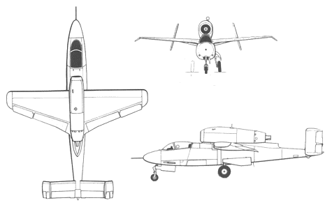 Les ailes, de dimensions assez réduites, étaient usinées presque totalement en bois, avec des volets à commande hydraulique en alliages légers. Toutes les gouvernes étaient compensées et dépourvues de servocommandes. Le moteur sélectionné le BMW 003, étaient placés sur le dessus du fuselage, au droit des ailes placées en position haute. Les canons étaient installés dans la partie inférieure de l'avant du fuselage.