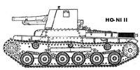 Ho-Ni II : Armé de l'obusier de campagne "Type 31", soit un canon court de 105 mm dans une casemate ouverte, donc orienté comme pièce d'artillerie en tir indirecte |