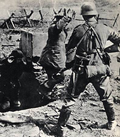 « Pionniers! » appellent les fantassins. Des lance-flammes crachent leur rayon de feu contre cet horrible rempart de poitrines. Puis suivent des grenades à main. On voit des fantassins pris de vomissements. Ce n'est qu'au cours de l'après-midi que quatre Russes, tremblants et complètement à bout de forces, sortent des décombres.