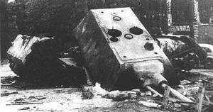 Ci dessus deux photos surement prises par les Russes d'un des deux prototypes que les Allemands ont éssayés de détruire à la hâte. Les deux photos représentent le méme char sous deux angles différents, c'est surement de ce char qu'a été prise la tourelle pour complétez avec le chassis pris sur le prototype numéro 2, donc ce char est probablement le prototype numéro 1.