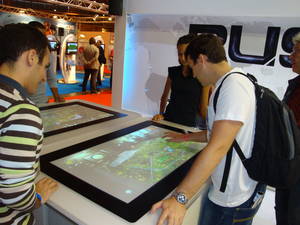 - Au niveau des PC qui faisaient tourner les tables tactiles, nous savons seulement que ce sont des Quadcores Intel associés à une ATI 4890, 4 Go de RAM, le tout fonctionnant sous Vista.