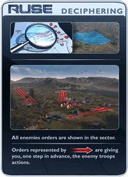 Je vous entends déjà venir. Mais… est-ce un mal ? Le brouillard de guerre est-il justifié ici ? Et bien non ! La véritable nouveauté de RUSE et de supprimer le brouillard de guerre et le remplacer par une « vision radar » que des unités avec un rôle d’éclaireur devront vérifier pour permettre à certaines unités de faire feu (tank, chasseur-bombardier…). Vous voyez ce que votre ennemi vous laisse voir et vous montrez ce que vous laisser voir vous-même. Vous verrez donc tout bâtiment ou « jeton d’unité » qui ne se trouvera pas sous l’effet d’une ruse adéquate ou dans une forêt/centre ville. Tout est dans l’utilisation des fameuses « ruses ». Grâce à un filet de camouflage, vous masquez vos bâtiments dans une zone pendant un temps limité. Votre adversaire ne verra pas l’évolution de votre base, mais lui, vous laissera-t-il voir la sienne ? Vous construisez une usine de blindés aux portes de la base adverse et l’avez camouflé avec un filet de camouflage, mais comment sortir les blindés sans être repéré ? En utilisant le silence radio ! A chaque fois que vous envoyez des blindés sur la base de votre adversaire, quel que soit l’endroit, il utilise des chasseurs de chars pour vous tuer ! Utilisez alors une ruse pour faire passer votre infanterie pour des blindés (et vice-versa) et chargez les anti-tanks de front ! Les variantes stratégiques sont nombreuses. Mais le pouvoir des ruses est limité en temps, en nombre et surtout... en pouvoir.