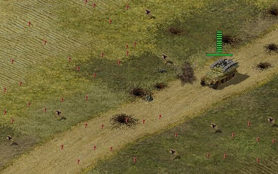 La bataille de Koursk s'est caractérisée par la masse des blindés engagée par chaque camp, mais aussi par les très nombreux champs de mines qui ont considérablement gênés l'avancée allemande. Soyez rassuré, Active Gaming a bien fait les choses et le déminage va vite devenir une seconde nature pour garder vos chars en bon état : gare aux carrefours oubliés ou au déminage incomplet ! Si c'est le cas, vous perdrez vite les véhicules qui prendront ces endroits dangereux en toute innocence : si c'est un char de type Pz III N, il sera immobilisé, mais si c'est un camion Opel Blitz ou un semi-chenillé Sdkfz 251 vous pouvez en faire votre deuil ! Chaque zone minée ou suspectée de l'être devra être traitée le plus sérieusement du monde surtout sans oublier de dissimuler vos sapeurs par des écrans de fumée générés par vos mortiers. Oubliez cela et vos véhicules démineurs deviendront la cible prioritaire des soldat Russes.