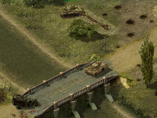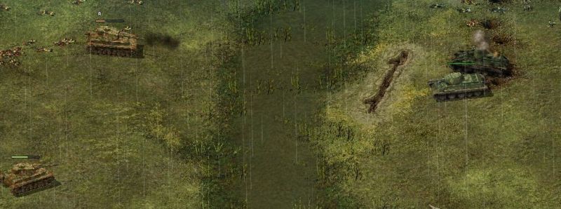 Autre changement d'importance : les épaves. Avec Blitzkrieg, l'épave d'un véhicule détruit disparaissait comme par magie au bout de quelques dizaines de secondes, ce qui était pratique lorsque le dit véhicule était détruit à un mauvais endroit (au milieu d'un pont par exemple!) Ce n'est pas le cas ici : une épave reste une heure en place ! L'aspect historique y gagne: en effet, un lieu de combat violent en garde les traces un long moment, ce qui renforce l'immersion dans le jeu. Mais le côté esthétique n'est rien à côté d'une épave au milieu d'un pont ! Ce genre de détail peut vous obliger à changer votre axe d'attaque pour trouver un autre passage. Ce choix du développeur vous oblige à être prudent sur les points stratégiques et à envoyer des reconnaissances pour assurer la sécurité de la traversée, puis à construire de l'autre côté du fleuve, par exemple une tête de pont solide pour empêcher toute intrusion de l'ennemi sur l'ouvrage. Soyez rassuré cependant, vous n'aurez pas à attendre une heure que le véhicule disparaisse pour continuer votre partie : toutes les cartes disposent de nombreux points de passage pour vous éviter de rester bloqué si jamais le cas se présentait.