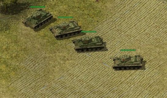 L'intelligence artificielle du jeu a été aussi largement revue et fait beaucoup penser à "Mission Barbarossa". Toutes les unités sont très agressives et engagent l'ennemi dès qu'elles le "voient". Le temps où les véhicules se laissaient détruire sans rien faire est terminé. Un Sdkfz 251 n'hésitera pas à se défendre contre l'approche de fantassins Russes en mitraillant les assaillants. Inutile de commenter la réaction des blindés. A ce sujet, il faudra prendre l'habitude, par sécurité, de retrancher vos unités pour les empêcher d'engager et de poursuivre l'ennemi dans des zones peu sûres et que vous ne surveillez pas. Il faudra aussi garder un oeil sur vos véhicules de déminage car si vous ne le faites pas et que des ennemis approchent, votre véhicule les attaquera et n'hésitera pas à traverser le champ de mines qu'il devait nettoyer allant à une destruction certaine ! (sans parler de votre colère...) Vous verrez aussi de puissantes vagues ennemies vous attaquer et faire retraite si vous leur causez de lourdes pertes. Ce qui compte du coup, ce n'est pas la puissance d'attaque de l'ennemi (nombre de chars et infanterie), mais votre capacité à lui causer des dommages pour provoquer une chute de moral et la débandade. Cette réaction est valable aussi lorsque vous attaquez des positions défensives : encerclez l'ennemi et il sortira des tranchées soit pour se rendre, soit pour faire retraite. Dans ce cas, les ennemis replient sans trop combattre, ce qui est l' occasion de les éliminer pour ne pas les retrouver à la mission suivante... Mais attention, la poursuite peut-être dangereuse ! Autre changement, le comportement des camions de soutien ennemi. Ils font ici correctement leur travail : tuez les servants d'un canon anti-char et vous verrez un camion russe s'approcher pour en compléter l'effectif ! Faites alors très attention de ne pas laisser du matériel derrière vous qui pourrait-être ré-équipé à votre insu et vous causer de bien mauvaises surprises. Dans le doute, obligez votre blindé à détruire le canon ennemi pour être tranquille ou mieux : capturez-le !