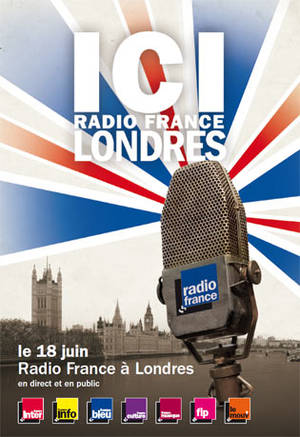 A l'occasion des 70 ans de l'appel du 18 juin, Radio France émettra demain depuis Londres, en particulier France Inter, de 6 heures à minuit. Pour consulter le détail des programmes en rapport avec la commémoration de cet important évènement de la Seconde Guerre Mondiale, cliquez sur l'image qui vous mènera sur le site de Radio France.