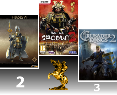 Une fois n'est pas coutume, l'année 2011 sera celle du tour par tour. C'est du moins ce qu'il faut conclure de vos votes. En effet, les deux premiers du podium représentent depuis quelques temps déjà les fers de lance du tour par tour. Shogun 2 : Total War, digne héritier de la série de Creative Assembly, devrait dans moins de deux mois faire un carton. Quant à Might and Magic : Heroes VI, il sonne le retour d'une grande licence et devrait marquer le retour aux sources de la série pour le plus grand plaisir des fans. Le troisième de ce podium est une surprise. Là où nous attendions un Dawn of War 2 : Retribution ou un Age of Empire : Online - comprenez un blockbuster -, c'est finalement Crusader Kings 2 qui tire son épingle du jeu. La communauté Stratégium a certainement été pour beaucoup dans cette victoire à l'arrachée.