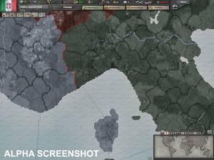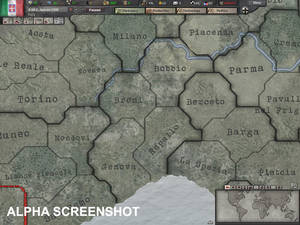 Aujourd'hui, nous avons deux captures. La première est un vue plutôt éloignée du nord de l'Italie, en mode politique. On voit clairement les bordures des régions, de même que celles des provinces. Nous pensons que ce sera le niveau de zoom le plus courant pour donner les ordres aux unités.