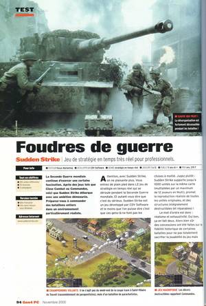 Lire le test de Sudden Strike réalisé par le magazine Génération 4 en novembre 2000