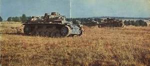 Belle photo couleur d'un Panzer III dans la campagne française en 1940. |