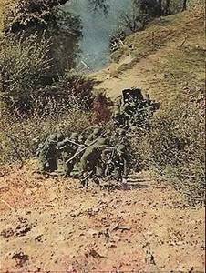 Autre photo couleur des schutzens ou stosstrupp escarpant les rives d'une rivière avec un PAK36 |