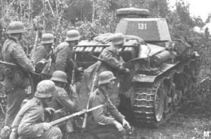 Panzer II couvrant l' infanterie d'assaut allemande |