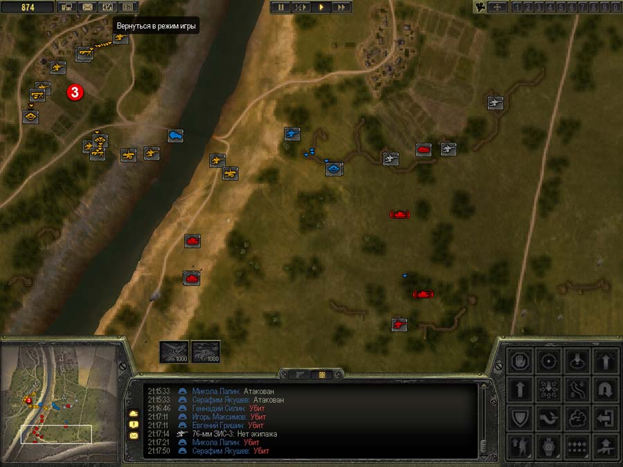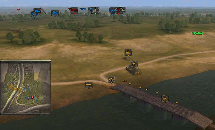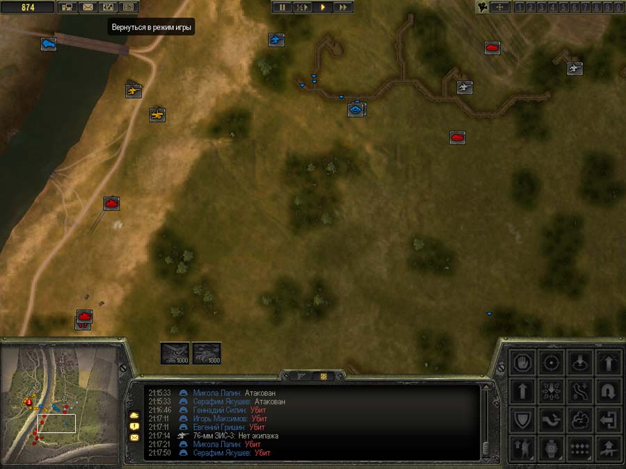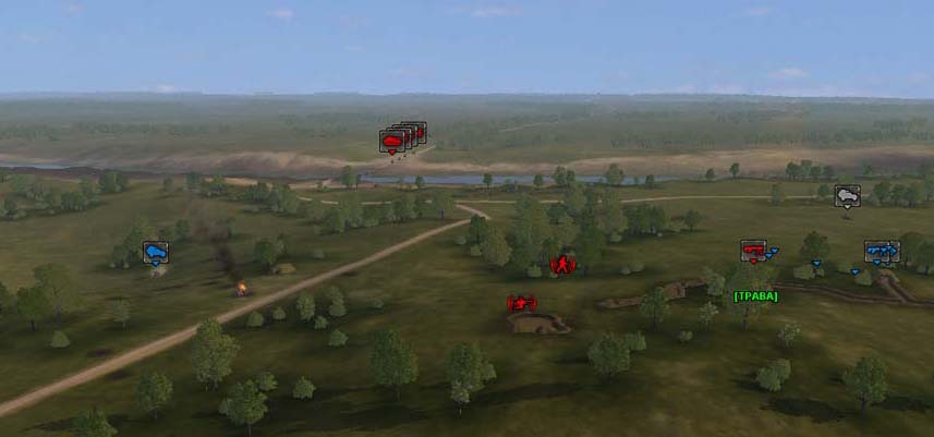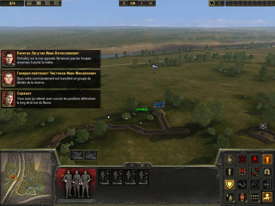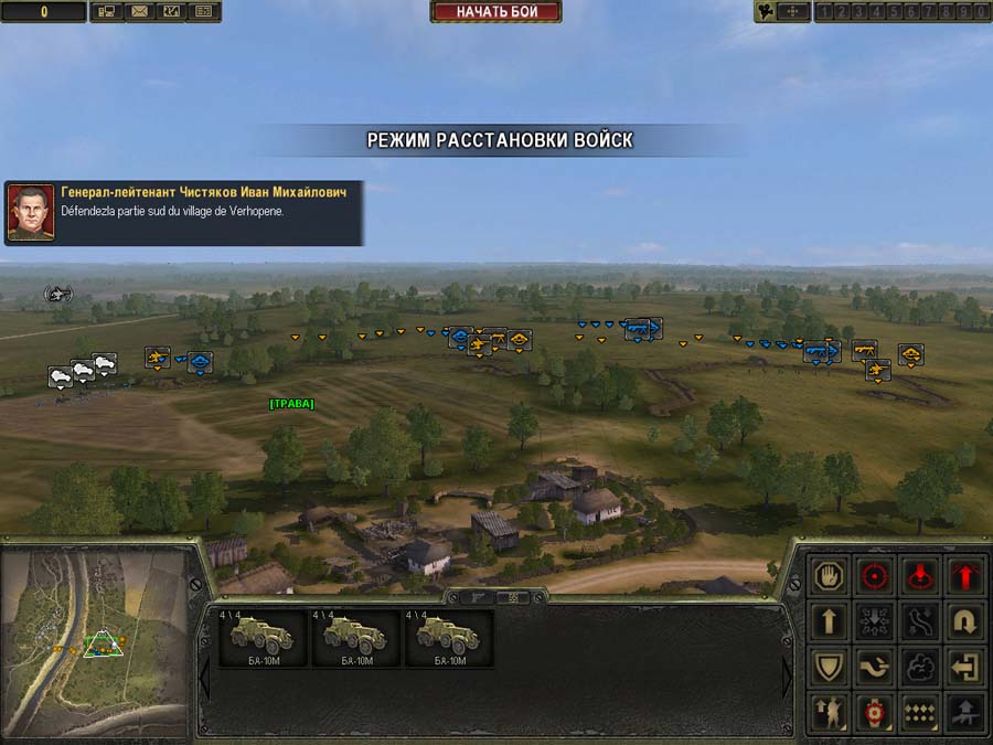 Il m'annonce aussi les renforts. Je dispose d'aviation, mais aussi de mes fameux 5 T34 que j'ai choisi dans l'écran de sélection des troupes au début.