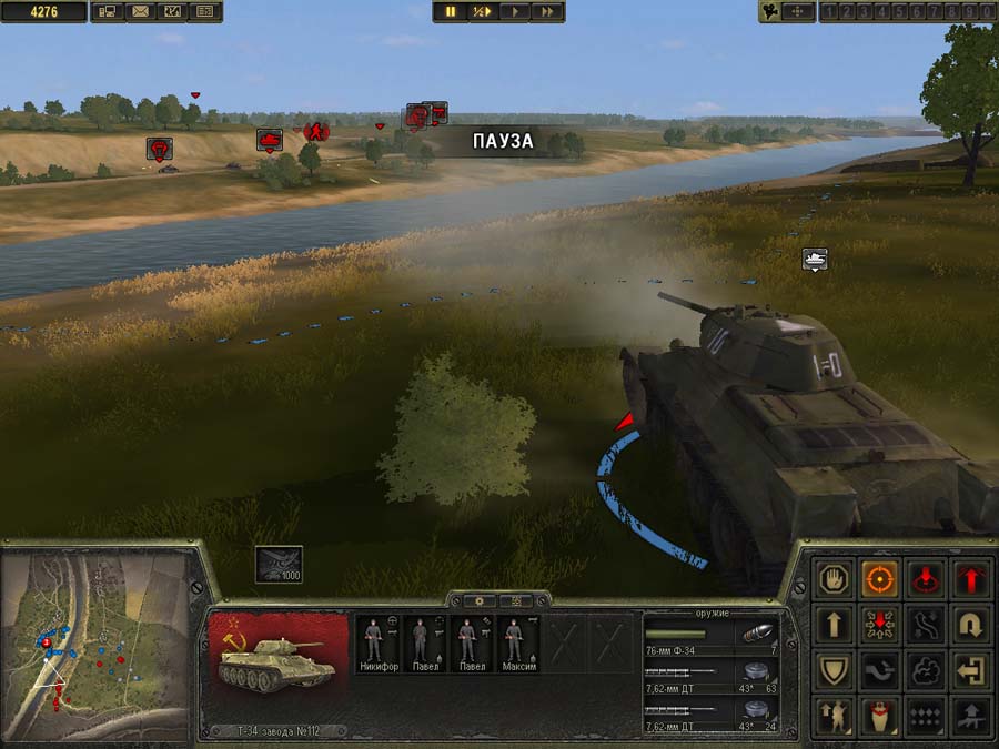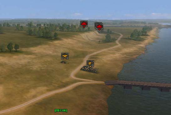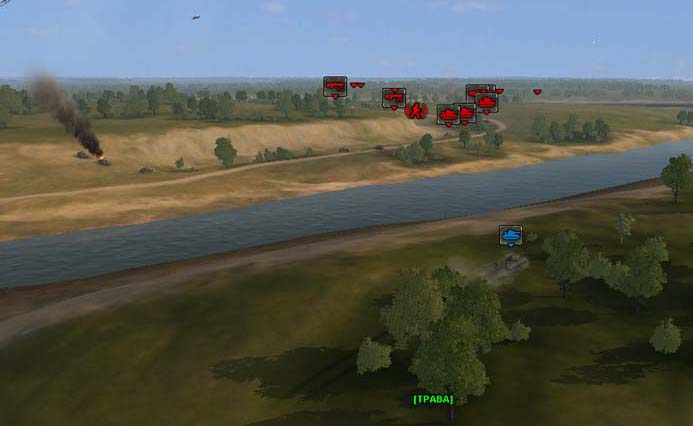 Mes premiers T34 arrivent en position sur la berge opposée à l'ennemi.