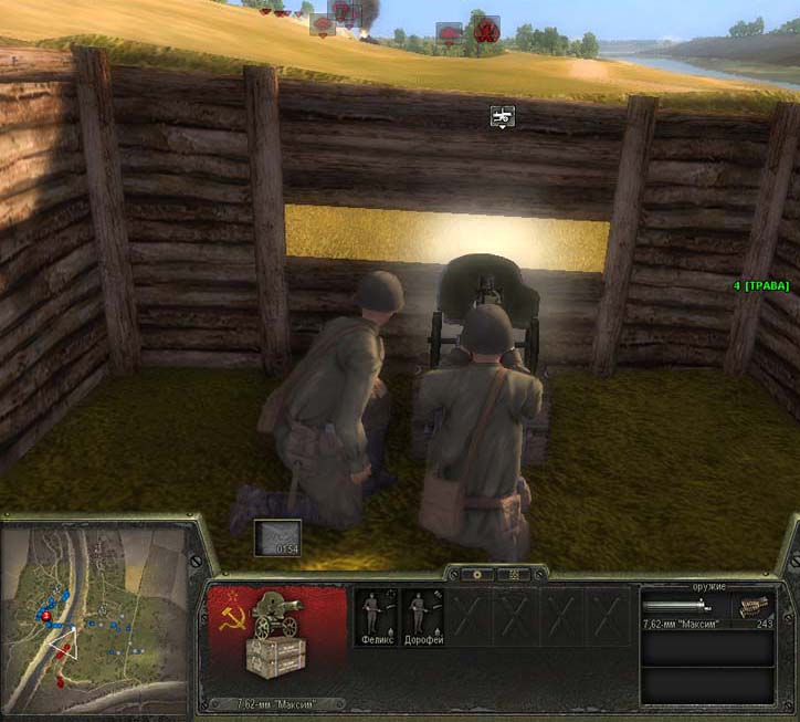 Enfin, toutes les troupes passent sous mon commandement. C'est pas trop tot que le QG s'aperçoive de ma valeur :-). j'en profite pour jeter un coup d'oeil à la mitrailleuse maxim, mise en position dans une casemate, sur de jolies caisses en bois !