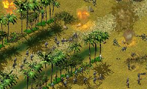 Dans le desert, une contre offensive allemande près d'une oasis.