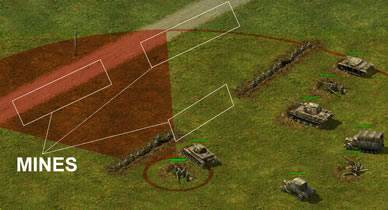 - Miner judicieusement. (portée "ennemi" et portée "infanterie / canon anti-chars")