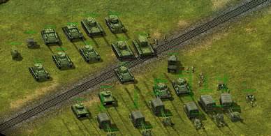 Une bonne défense doit aussi passer par la gestion des moyens. Ici un train munis de canons léger fait office de défense avec des unités s'abritant derrière celui ci. Toutefois ces unités "profitent" du champ de vision du train.