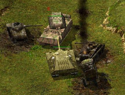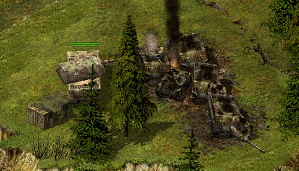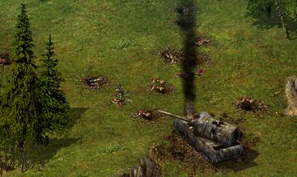 | Mais pour finir à son tour détruit par l'infanterie (bazooka + grenade) qui l'attendait en haut d'une colline |