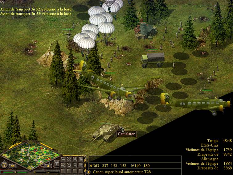 et un screen d'ensemble, les para allemand vont tomber en plein sur le T28, qu'il immobiliserons à coup de grenade et qu'il finiront également par détruire.