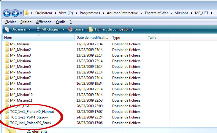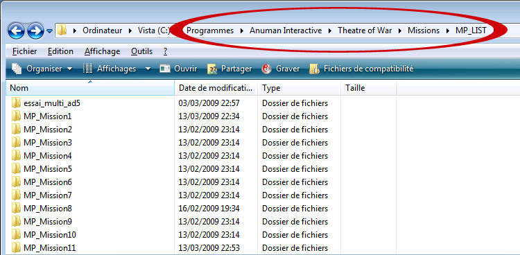 Ensuite, vous allez ouvrir le répertoire qui contient les missions multi (pour la version francaise, /Anuman Interactive/Theatre Of War/Missions/MP_LIST :