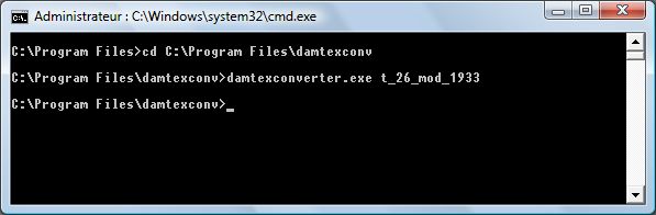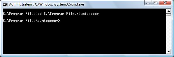 First, it is easier to go in the right folder : (cd C:\Program Files\damtexconv)