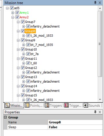 Concrètement, il serait plus simple de mettre les 3 BT7 dans le même groupe par exemple. Mais comme nous avons utilisé le générateur de mission, cela n'a pas été mis comme ca. Peu importe.