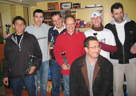 Les vainqueurs, l'équipe du clan STS, avec de g. à dr. Ravage, Thor, Manteufel, Koniev et UkraineRod. Accompagné des deux organisateurs : Torp (tout à droite) et Cham (à l'avant plan)